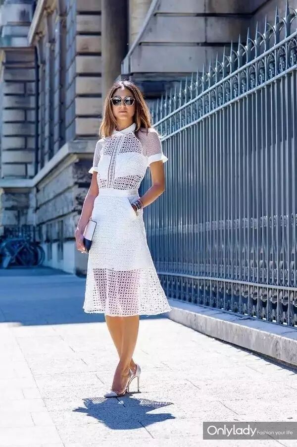 这身镂空小白裙不仅是性感,还带有不拘一格的风格,搭配手镯+腕表,恰到好处的美。