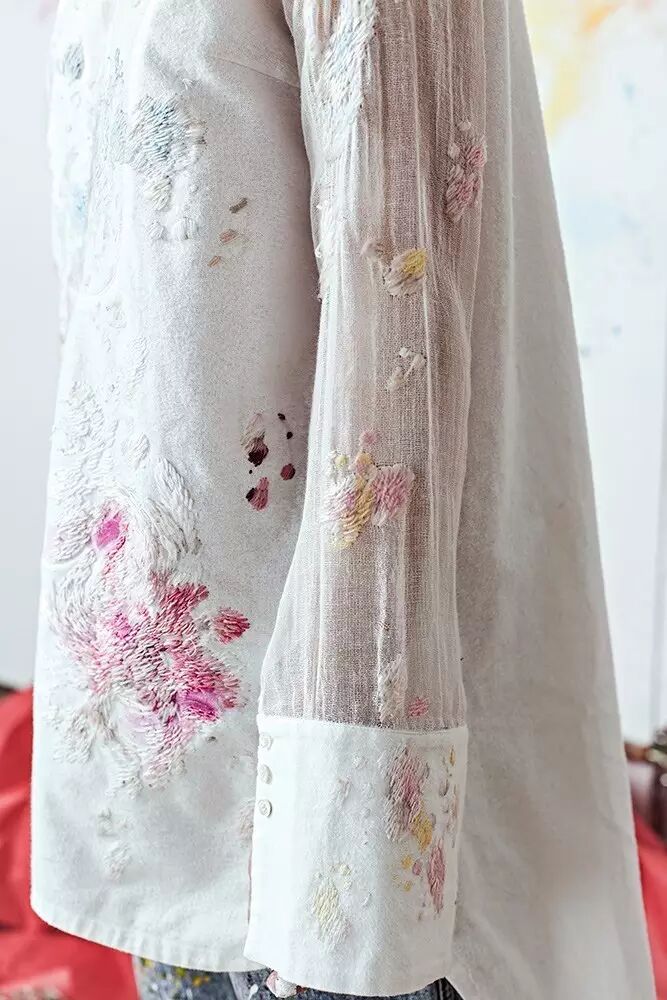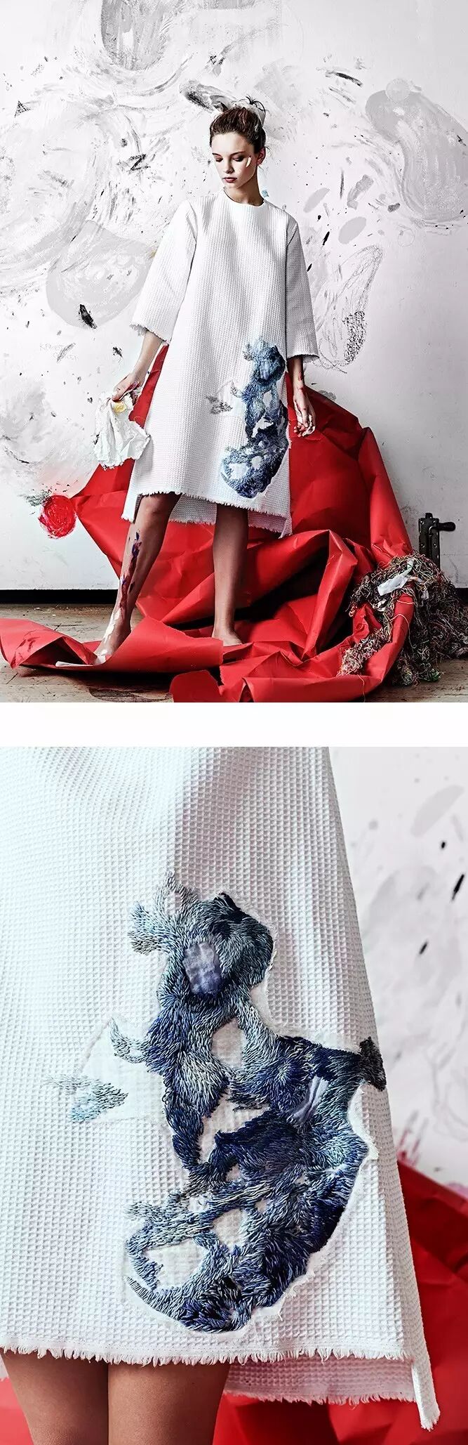 俄罗斯手工艺术家 Lisa Smirnova 近期与环保服装品牌 Olya Glagoleva 合作。完成了一系列以麻、棉、牛仔为材料的服装。