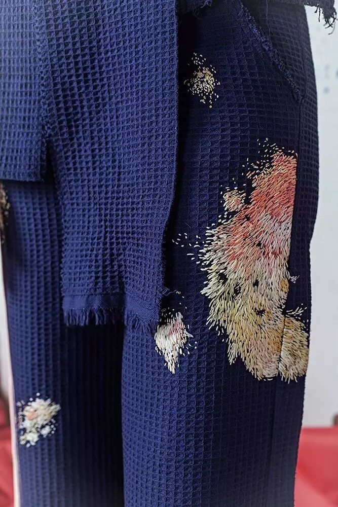 其中有些毛巾、毛毯都是从跳蚤市场淘来的。Lisa 以这些材料为画布,用手中的针线绘画出令人惊艳的图案。