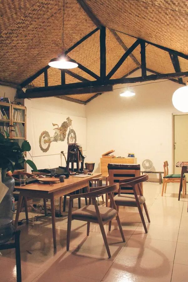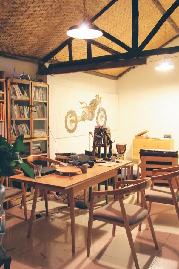 我们生活在这个院子里,看书、看电影、生火取暖、喝酒聊天、晒太阳打瞌睡;我们也工作在这里,木工木刻、手作银饰、画画、做抓饭、烤羊肉。