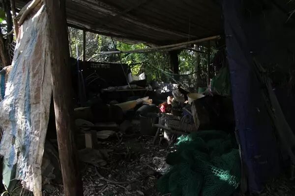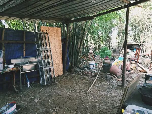 整理院子西南角的木棚,之前是用来堆放杂物的,我们把它改造成室外厨房。
