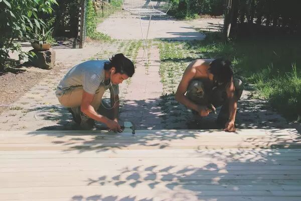 大叔有所有我们需要的工具,电锯、直钉枪、码钉枪,也给我们提供了很多可行的改造建议。