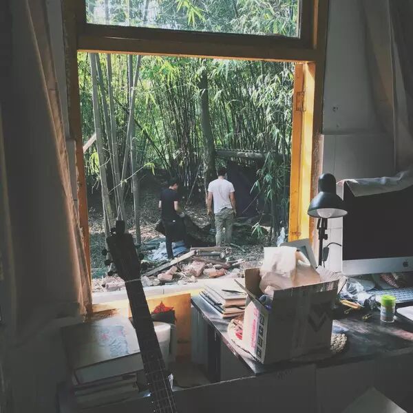 一进大门,是地势较高的部分,有半亩地大小,是我们常用的生活区域;在院子的右侧,是地势较低的部分,一大片竹林,可以把木工棚和篝火放在这里,风景美又不影响平时的生活。