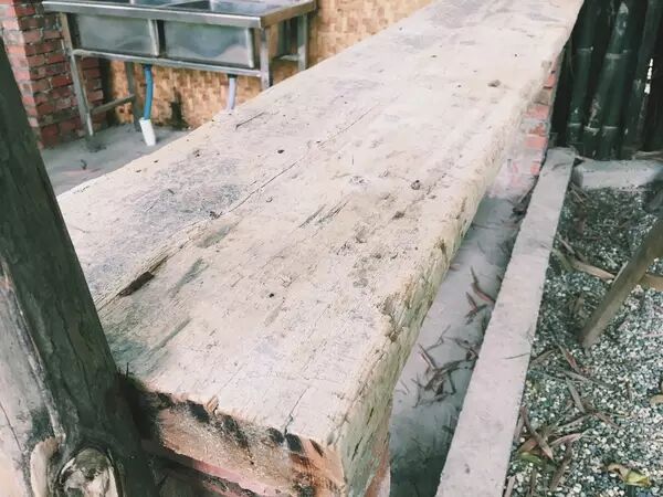 用火砖砌成灶台和吧台的柱子,老的木质跳板做成吧台面;