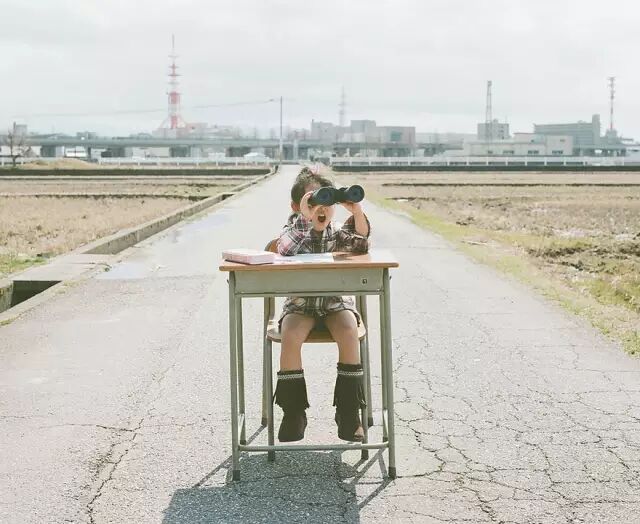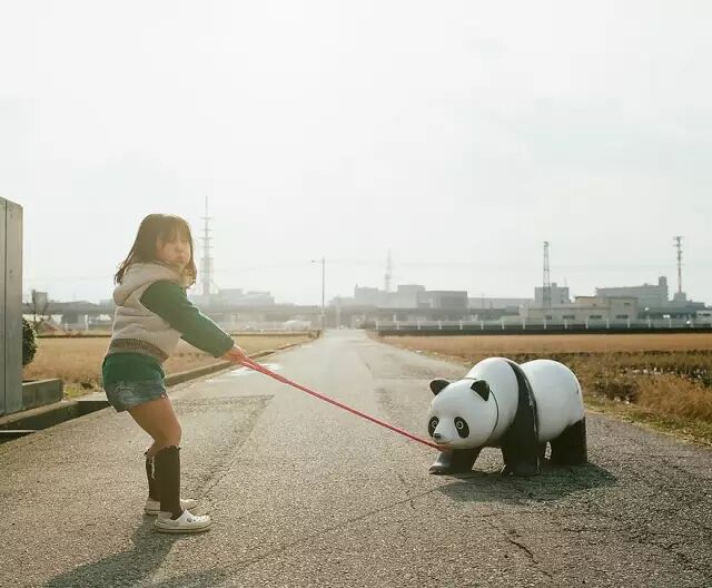 这张照片属于《我的女儿 Kanna》(My Daughter Kanna)系列,系列中所有照片的背景都是同一段公路,这里似乎成了小女孩 Kanna 的全部世界。