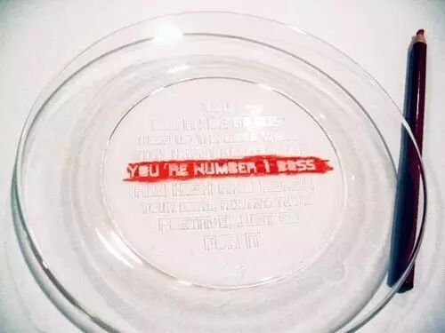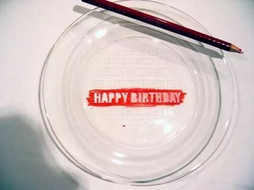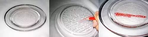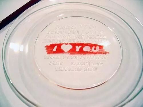 盘子底部已经印好这些短句,只要拿配套的彩笔在上面涂抹,文字就会立马显现出来,这个盘子真是太浪漫了~
