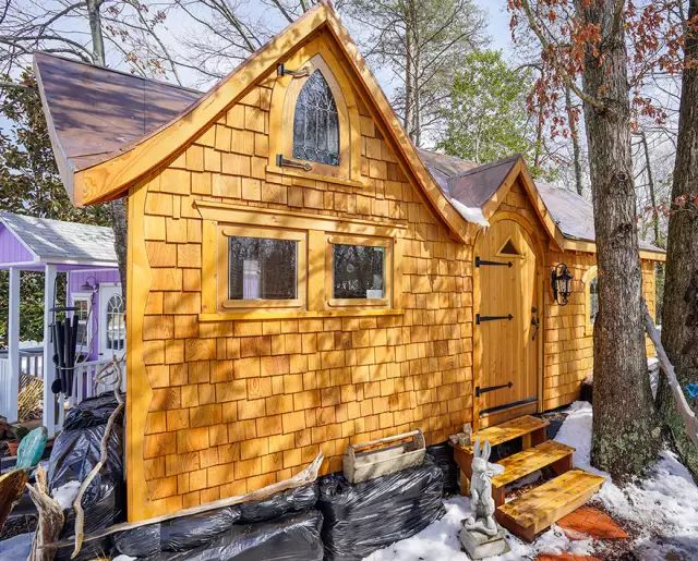 能和爱人在初雪的山坡上有一栋小房子,一定是很多女生梦中的场景。Laura和Matt两人就做到了。在北卡罗来纳洲的山中,他俩建造了一座小屋,只有11平方米大哦!在房间里热气腾腾温一壶茶,两个人静静看窗外大雪纷飞,谁说浪漫一定要奢华。