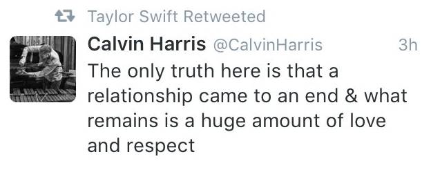 当时分手后,Calvin Harris在推特上发了这条推。。