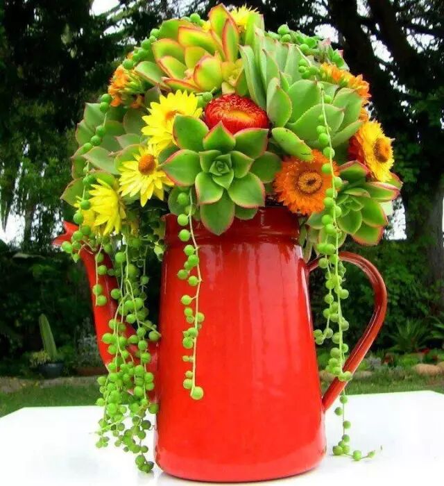 废物利用从来都是多肉创意的好来源,挂满 着慢慢的珍珠吊兰呢!