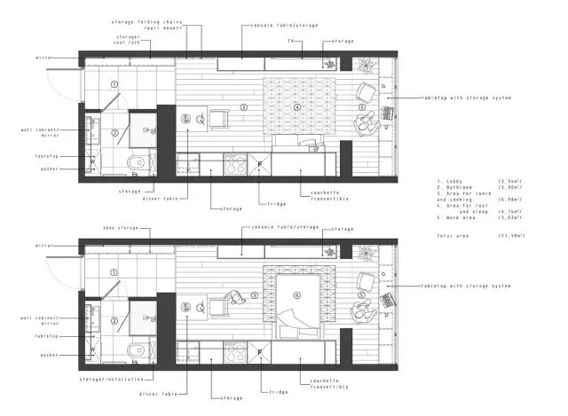 俄罗斯设计师 Andrey Barinov 的22平米空间方案。
