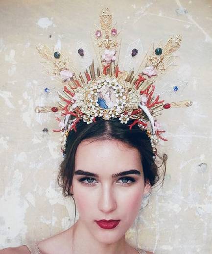 一片趋同的简约风潮之下,Dolce & Gabbana从不吝啬表露奢华艳丽,尤其高级定制系列里的那些工艺卓绝的精美头饰,简直每一件都可以收入博物馆典藏了……
