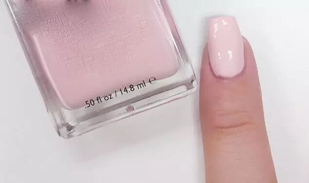 Step 1:在所有指甲上涂上浅粉色指甲油,最好涂两遍,等第一遍指甲油干后再涂第二遍。
