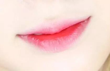 Step 8:先给双唇打底,遮盖住嘴唇原本的色彩能让口红更显色;接着在嘴唇内侧涂上口红并用指腹轻轻向外侧晕染开。