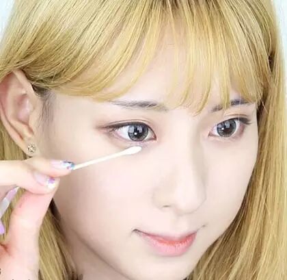 Step 4:用白色珠光卧蚕眼线液画在下眼睑前半段,这样让妆容看起来更无辜可爱。