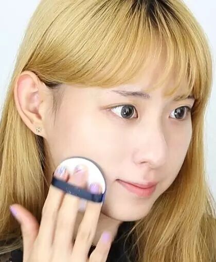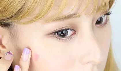 Step 7:在脸颊上点上粉色腮红膏并用指腹轻轻晕染开。