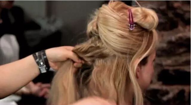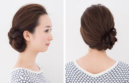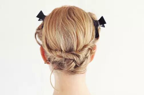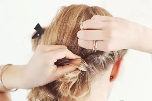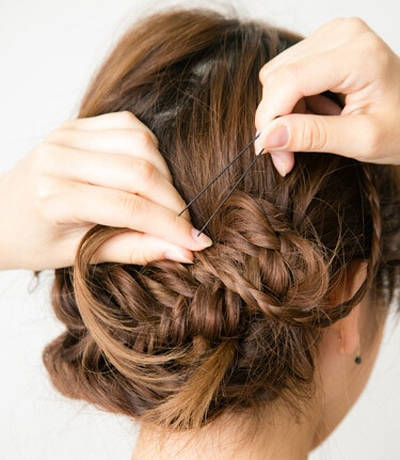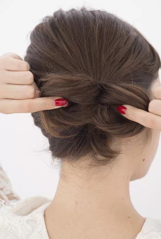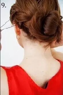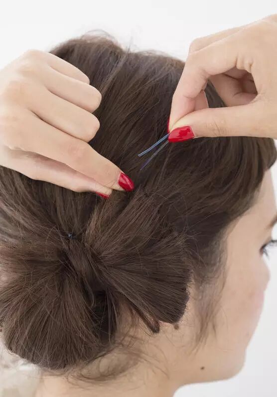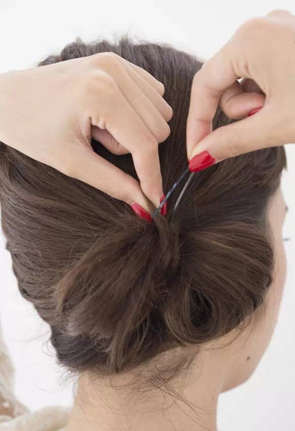 【 39 】步骤3:将拧转的发束盘在脑后并用发卡固定。