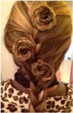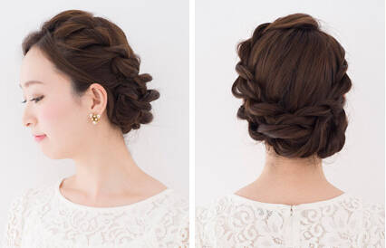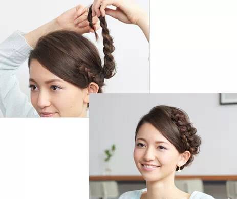 【 12 】STEP5:编好的发辫向内向上卷起,固定在耳朵后方。