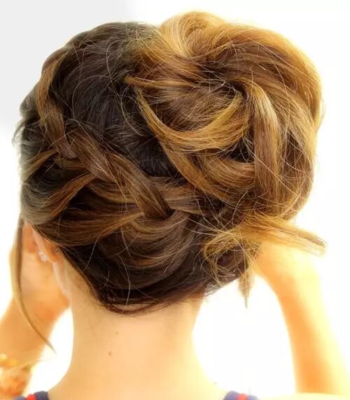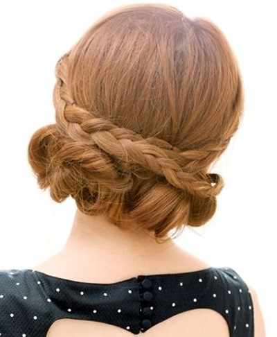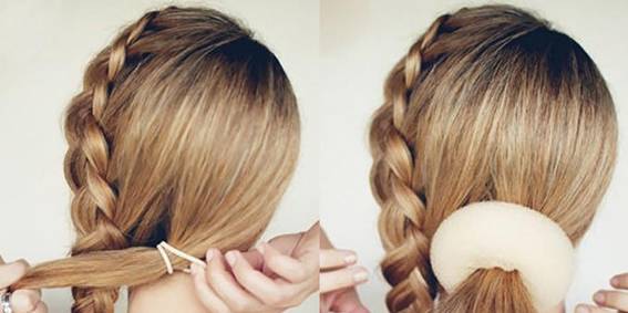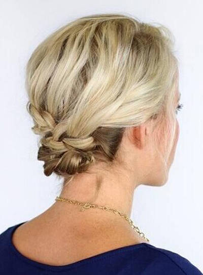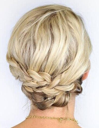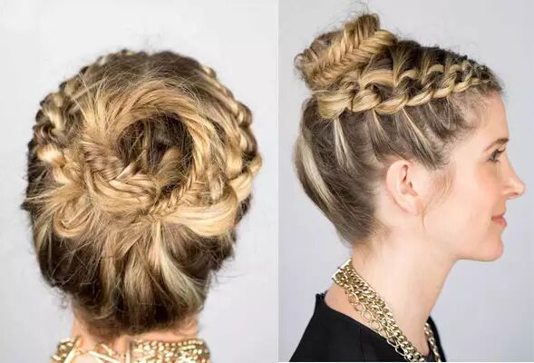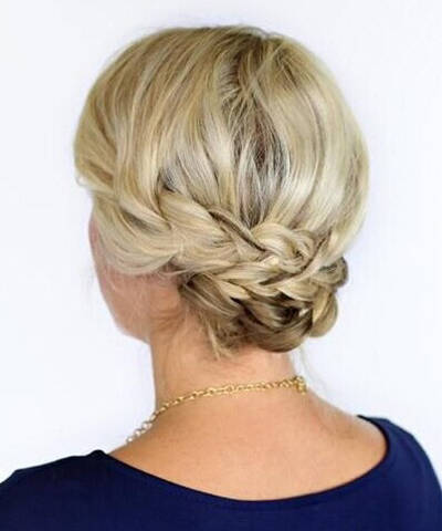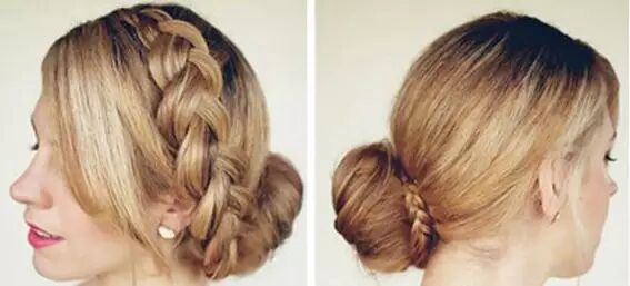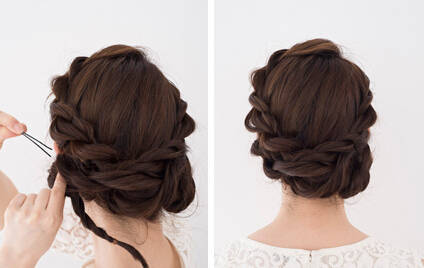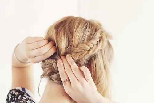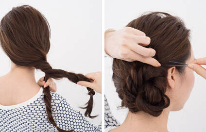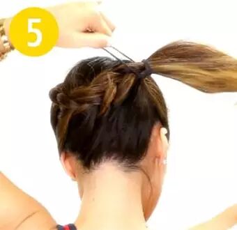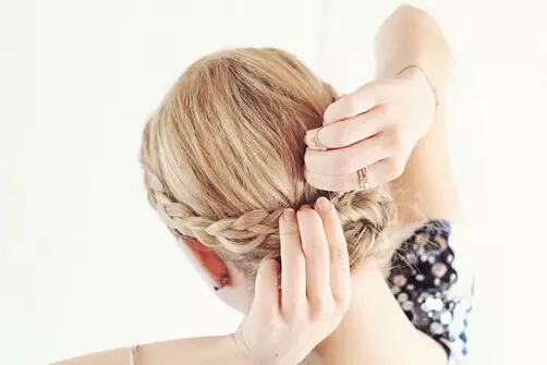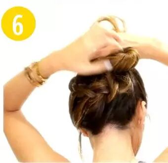 步骤5:将麻花辫缠绕于发髻并用发卡固定。从后面看起来,既俏皮又不失优雅,既巧妙又充满美感。