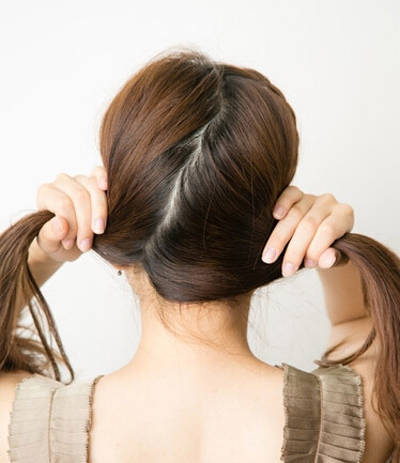 【 38 】步骤2:将剩余的头发分成两束,分别拧转。
