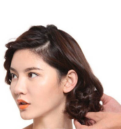 【 19 】Step5:然后再用弯曲的头发向两边拉开,用夹子固定,调整固定后的形状。