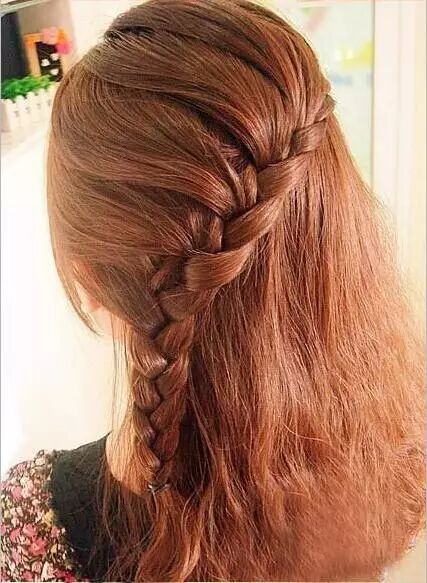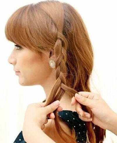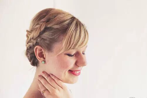 斜刘海不仅完美修饰脸型,而且让你看上去格外优雅。侧边的麻花辫造型,增添了不少浪漫气质。