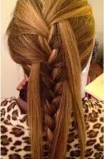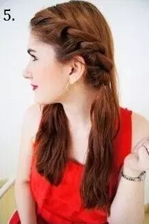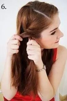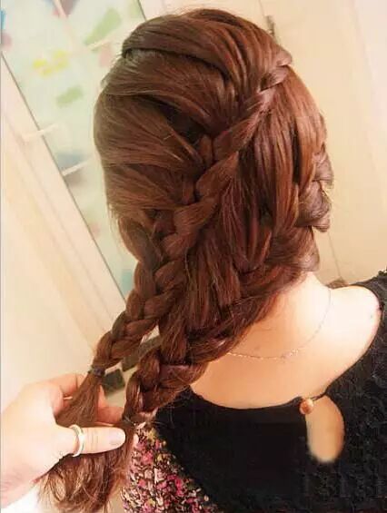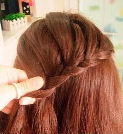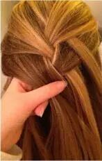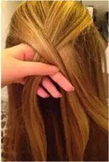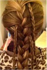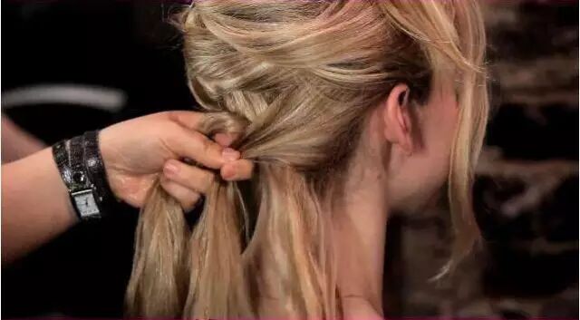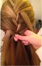 Step4:取中间分层的头发,也变成三股麻花辫。