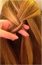 Step 3:然后从活结的两边取少量头发加入原发束中继续打活结。