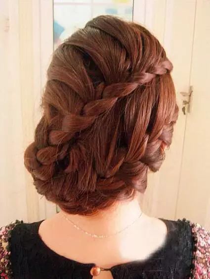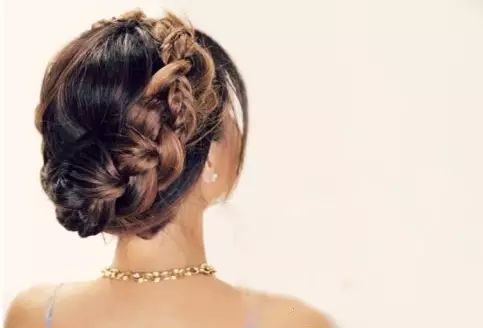 第五款 优雅的花式盘发,令整体的气质婉约优雅,露出的脖颈配上华丽的珠链,更显尊贵高雅。