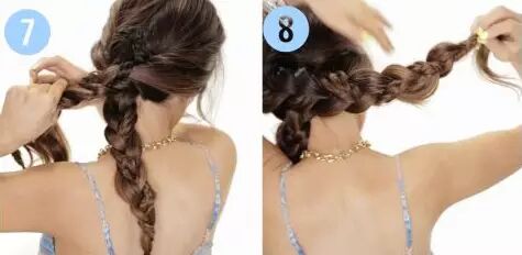 【 4 】STEP3:编到发尾用橡皮筋固定住,然后用手指将头发微微拉松。