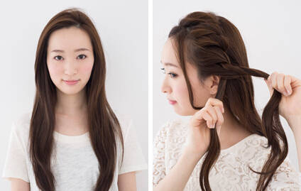 【 3 】STEP2:左侧前半区的头发则是变成简单的三股辫即可。