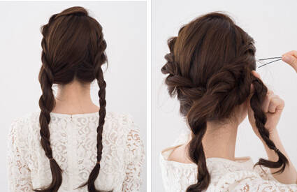 STEP4:另外一侧的头发用同样的方法拧转之后固定住。