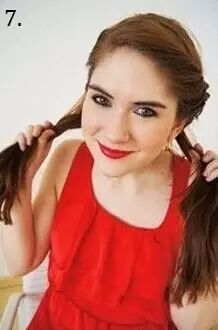 【 21 】Step7:接下来将之前分好的左右两侧头发散开,开始取出三股编两节麻花辫。