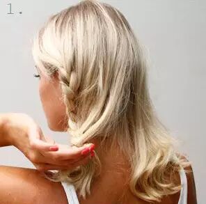 Step2:将分好的头发用大发夹固定,取最下层的头发按三股麻花辫的编法进行编发。