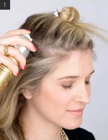【 155 】Step 1:先在头发上喷上定型水,便于后面的造型。