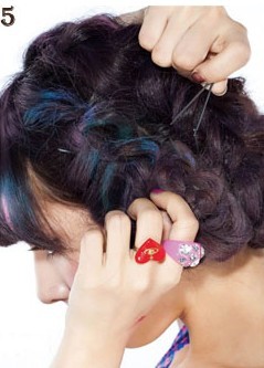 【 6 】STEP5:用发卡将折进去的头发固定住。右侧的头发采用同样的方法操作。