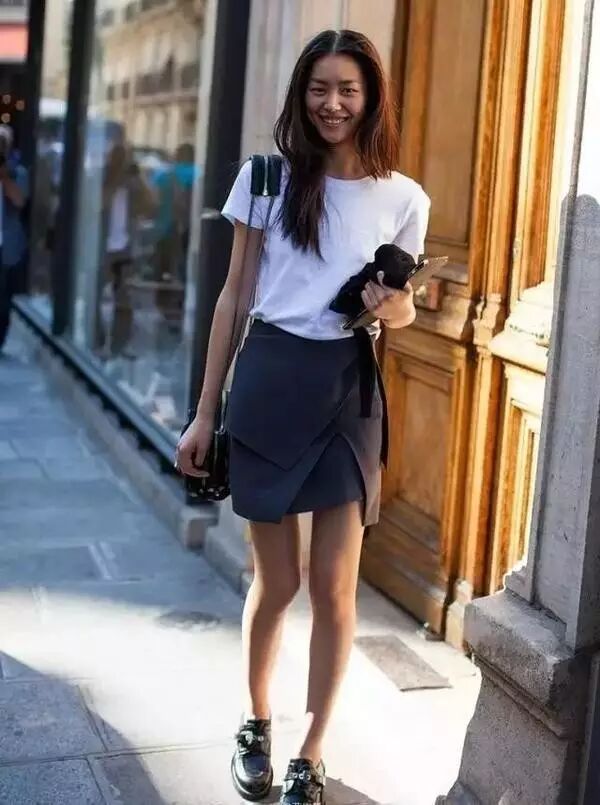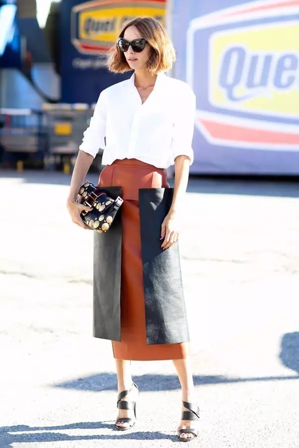 纯棉、雪纺、皮革任意混搭便可创造出一条半身裙,
