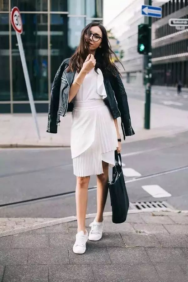 呼应鞋子,白色内衬到白鞋一气呵成。