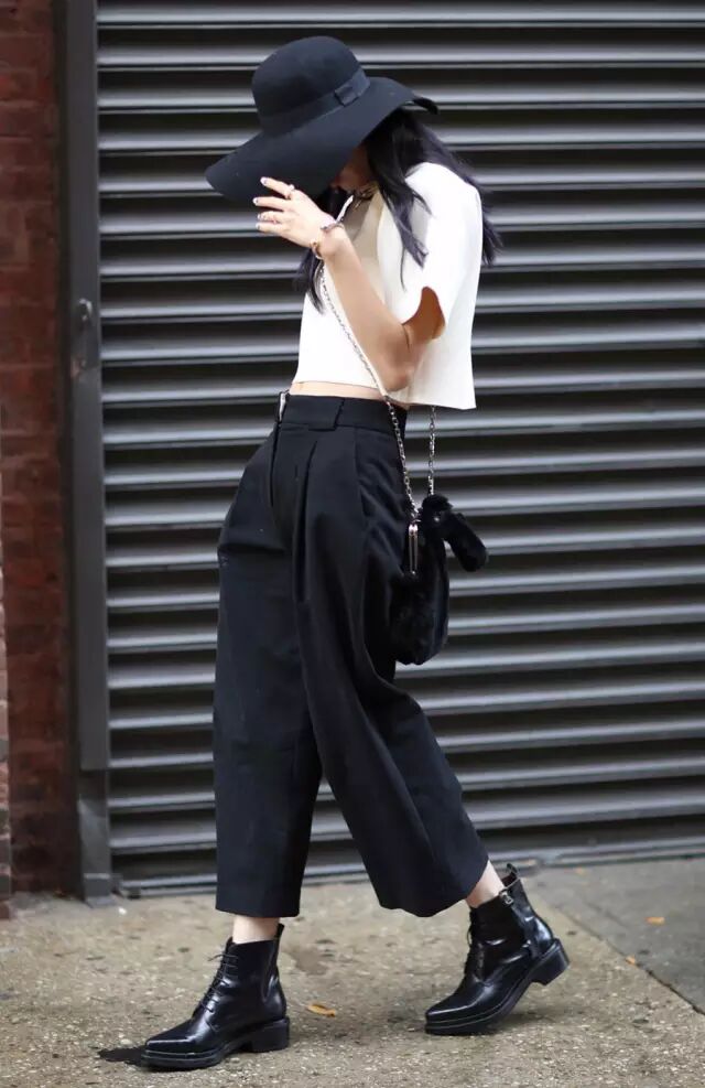 但如果下身非要穿阔腿裤,那还是选七分长度最标准。