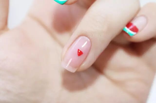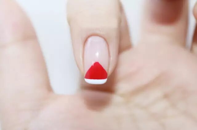 Step 7:无名指上用西瓜红色指甲油画一个小三角形。