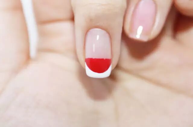 Step 5:在指尖用白色指甲油勾画出半圆的弧度。
