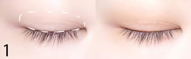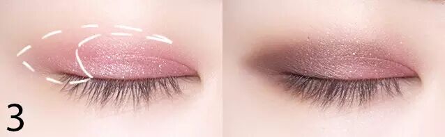 Step 2:上眼皮靠近睫毛这边的2/3区域用紫红色珠光眼影晕染。