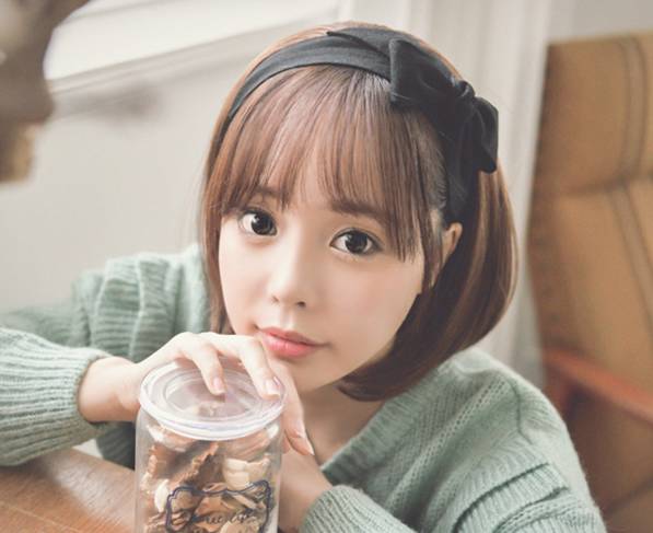 Style 9:空气刘海+可爱短发空气刘海非常适合短发造型,大蝴蝶结发箍减龄可爱,似邻家少女清新甜美。