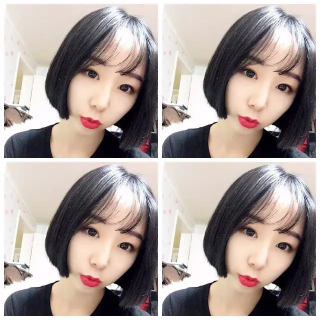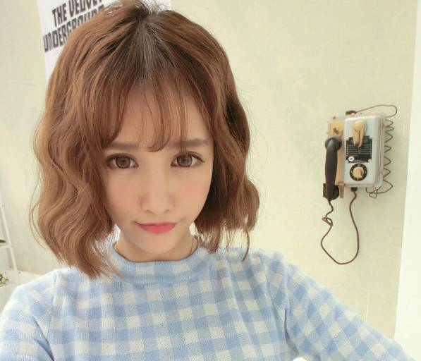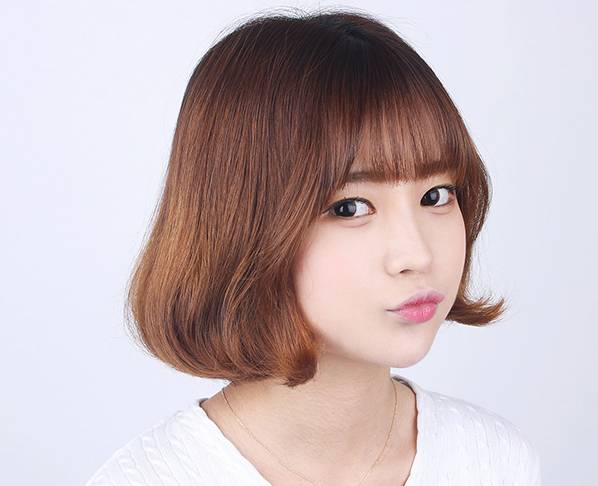 Style 3:空气刘海+波波头空气刘海搭配短发造型轻松可爱,及眉长度刚好修饰脸型,发尾稍稍弯曲外翘,活泼灵动。