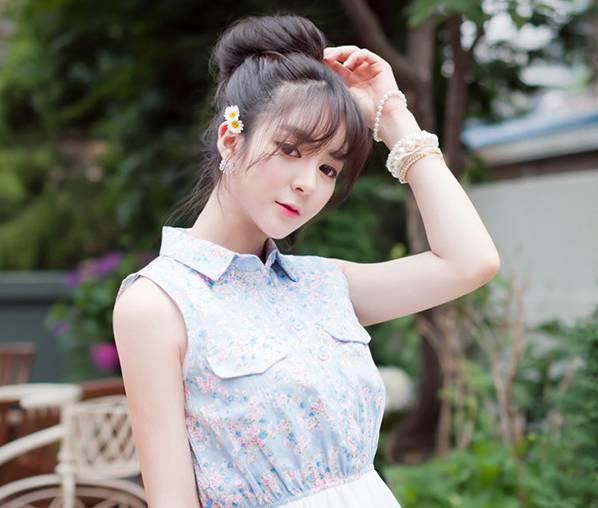 Style 2:空气刘海+丸子头空气刘海的轻盈可减少大花苞丸子头的厚重感,既可保证清爽感,又时尚加分,轻松减龄。
