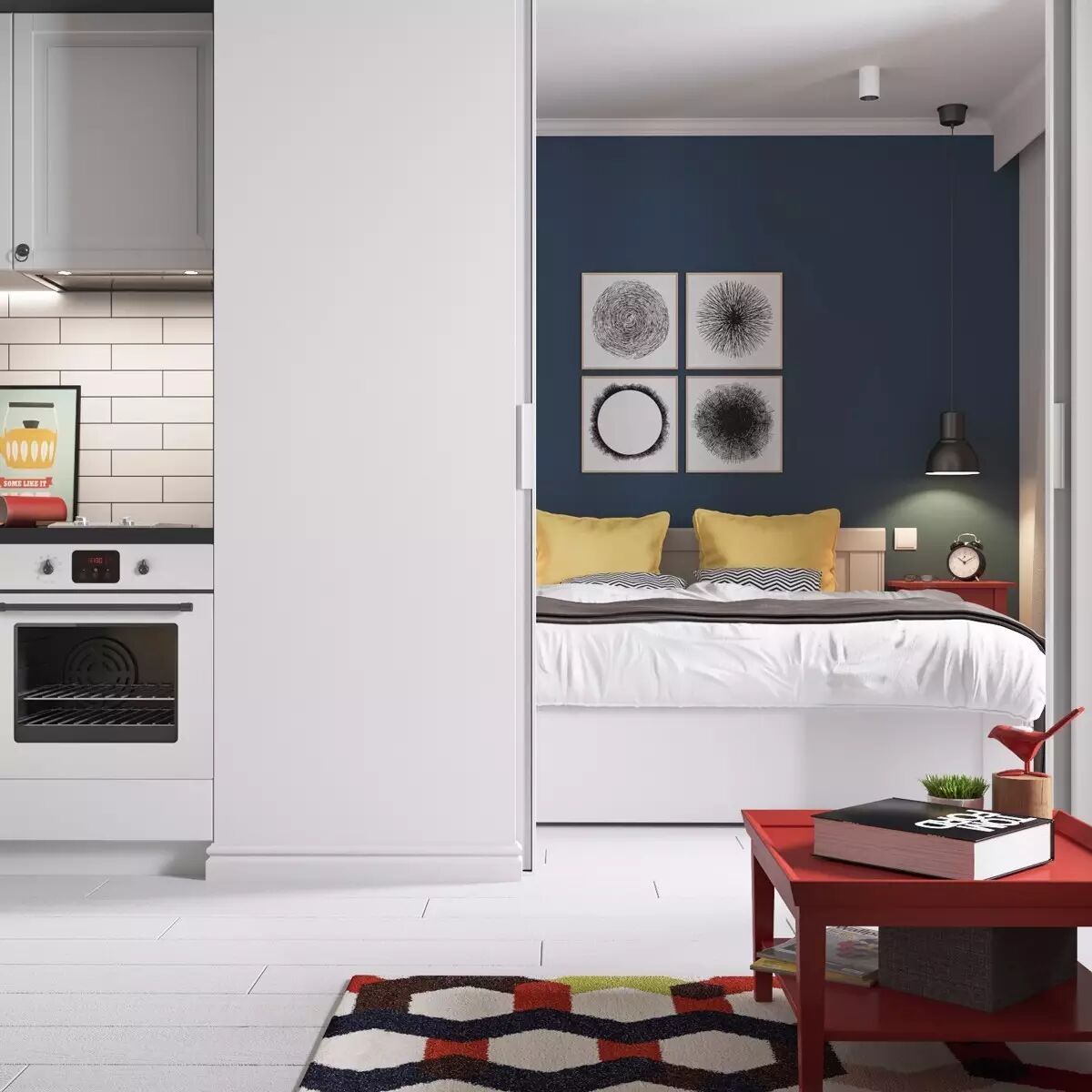 白俄罗斯设计师 Iryna Sotnikava 的一个小公寓空间方案。