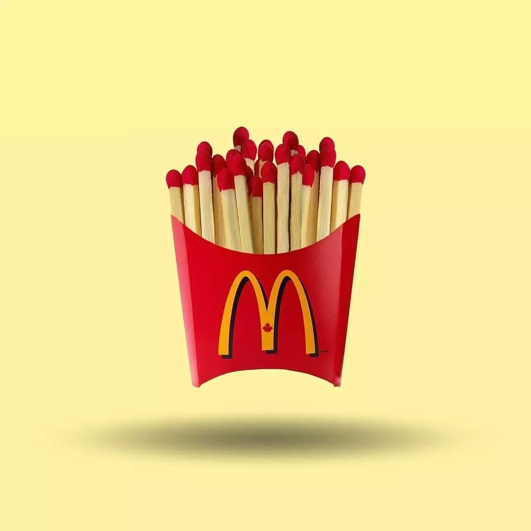 他利用不同物品的形、意、文字游戏,将它们结合起来,其中充满了想象力和恶搞。