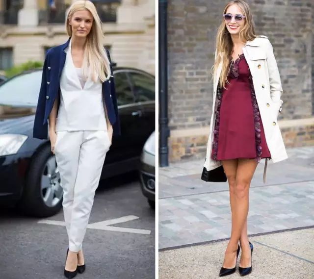 穿尖头鞋时,尽量选择露脚背多一些的鞋型,这样拉长效果更佳。▼