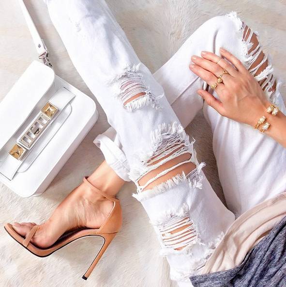 2)裸色裸色鞋子的增高原理和之前提到的多露脚面其实是一样的。裸色和自己本身的肤色相近,远远看起来有视觉延伸感,记得一定要选择和自己肤色相近的裸色才能发挥最大效果哦~▼