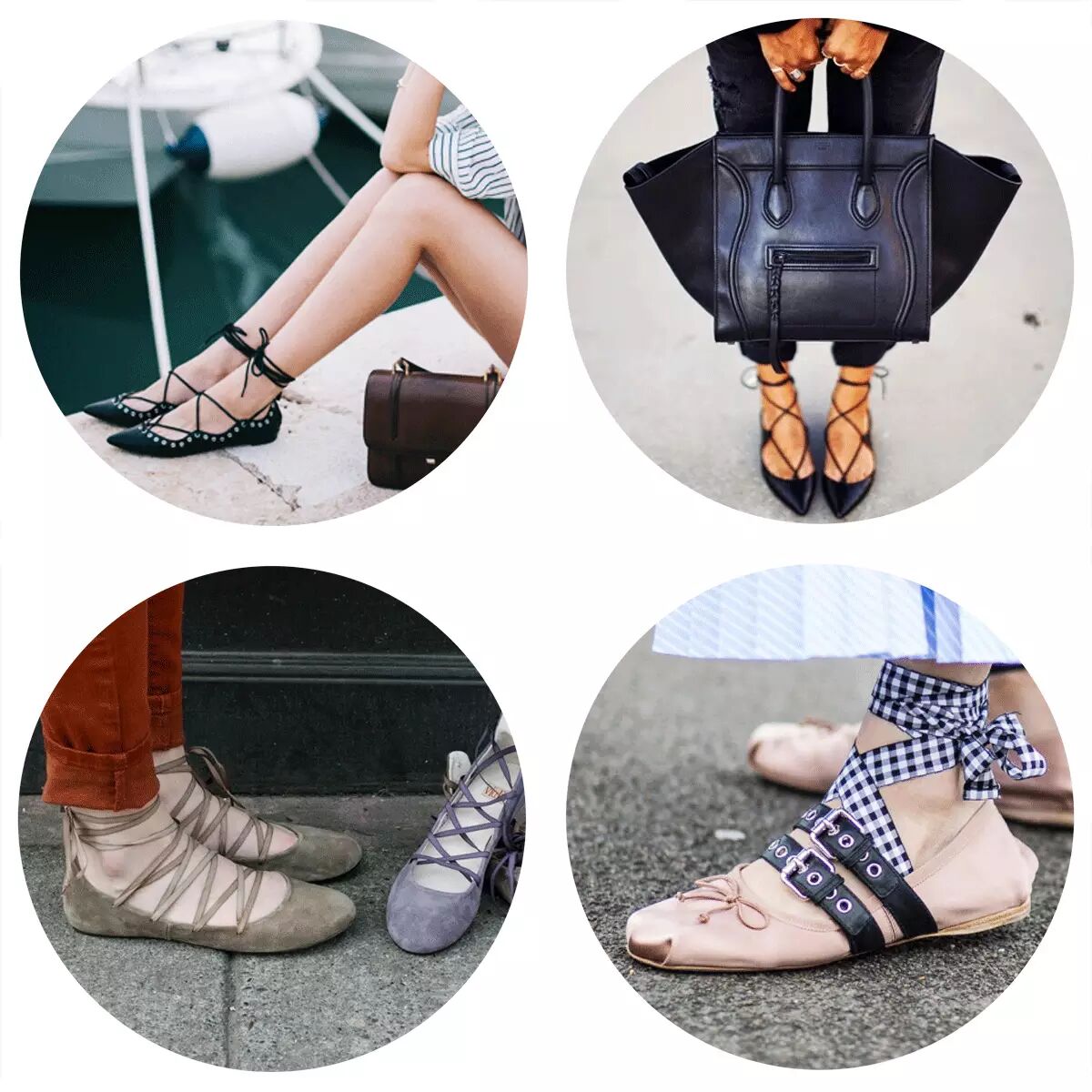 虽然总是说经典经典,不过今年确实也是有一些不同之处。区别一:芭蕾风绑带今年芭蕾舞风格算是吹遍了各大Fashion网站,无论是大牌还是小众品牌都纷纷推出了很多芭蕾风绑带鞋。像是加入了绑带设计的尖头鞋款,将经典但可能有些Old School的鞋面彻底改变,感觉非常优雅。 平底Look▼