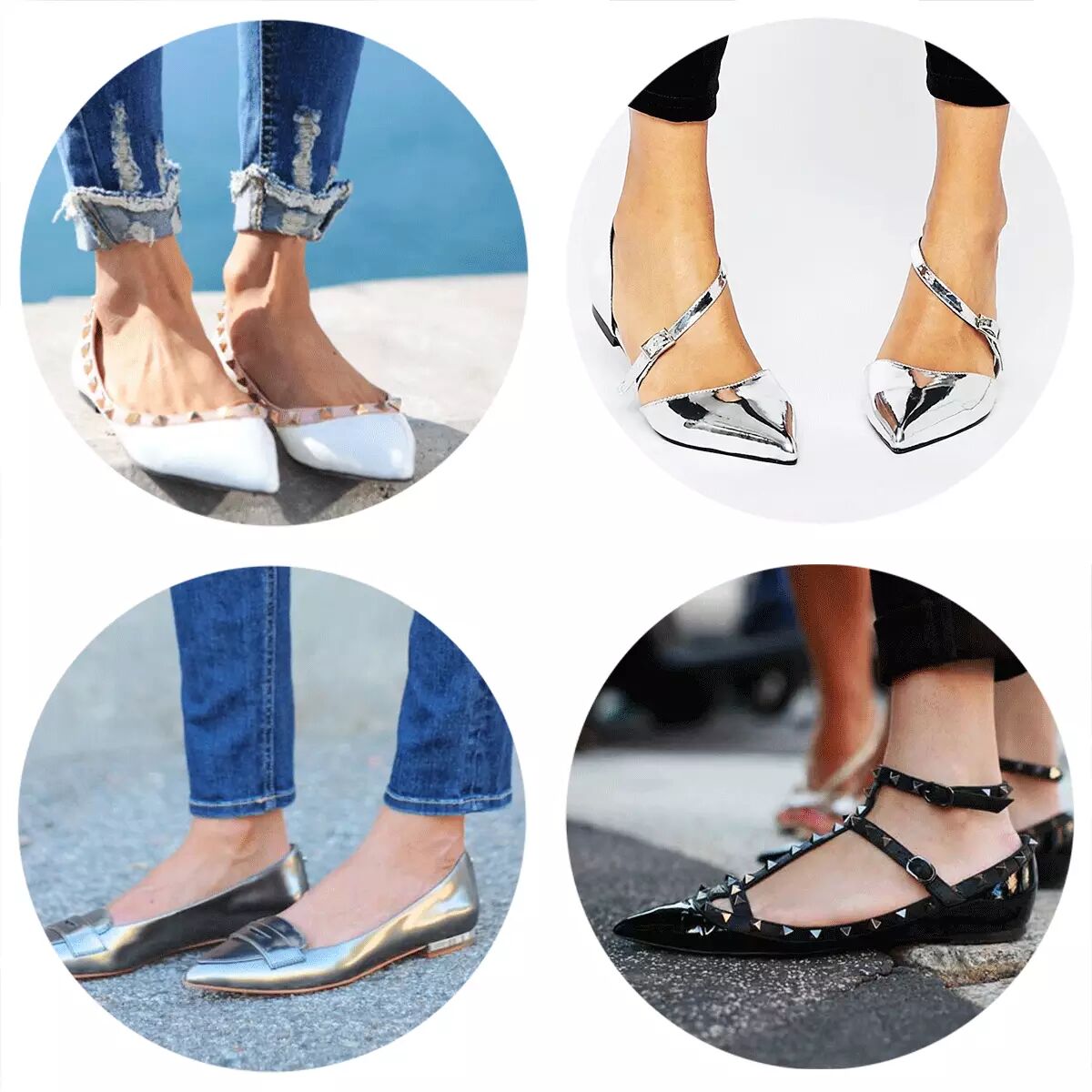 ▼在大家都熟知的《罗马假日》中赫本穿着的就是 Ferragamo为她定制的平底鞋这种芭蕾舞鞋型的平底鞋 一下子就俘获了女神的芳心结果赫本就穿着它40年 优雅了半个世纪 而对于现代的社会 很多人都会出现一个误区:平底鞋显矮所以再辛苦都要蹬着一双高跟鞋其实平底鞋不仅舒适 还显腿长哦 不相信的小伙伴 快来跟小编一起来看看吧 鞋型 & 款式1)尖头尖头鞋就是鞋头尖瘦的鞋,穿上后会在视觉上使脚变得又窄又修长,脚背自然地漂亮弓起,能修饰脚掌宽的问题。缺点是穿久了会磨脚,超痛,但是要美我忍~▼